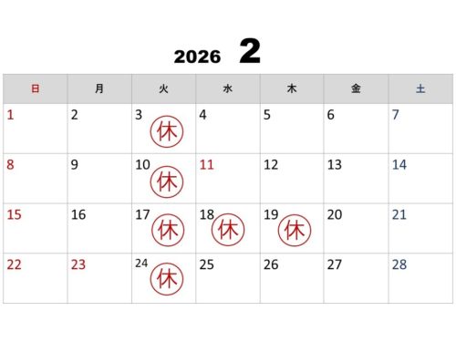 いつもご覧いただきありがとうございます。 2月の定休日は毎週 […]